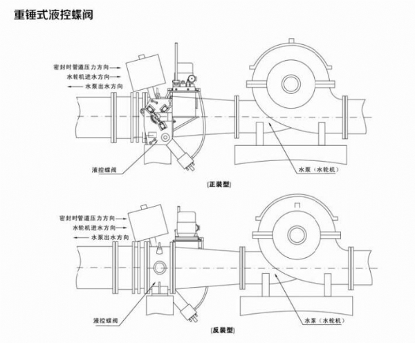 液控緩閉蝶閥是目前國內(nèi)外較先進的管路控制設(shè)備,主要安裝于水電站水輪機進口,用作水輪機進口閥;或安裝于水利、電力、給排水等各類泵站的水泵出口,用以代替止回閥和閘閥。工作時,該閥與管道主機配合,按照水力過渡過程原理,通過電液控制程序的有效設(shè)置,實現(xiàn)管路的可靠截止,有效消除管路水錘,并可實現(xiàn)無電自動關(guān)閥,起到保護管路系統(tǒng)安全的作用。